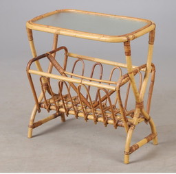 Page 1 of 6 Porte-revues vintage en bois et cannage, 50’s.