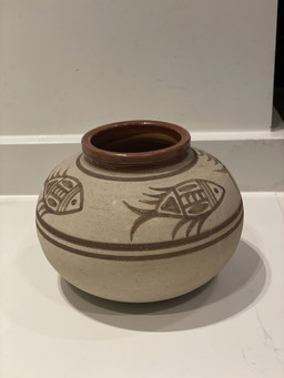 Vintage beige and brown ceramic vase by Fred and Andrée Stocker, France 1970