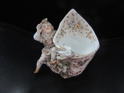 Panier ancien en faïence fine orné de fleurs - fait main