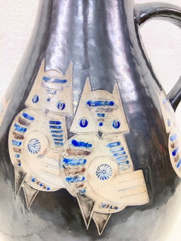 Grand vase de sol Töpfereihof Mühlendyck 1990 Décor de chouetteGrand vase de sol Töpfereihof Mühlendyck 1990 Décor de chouette