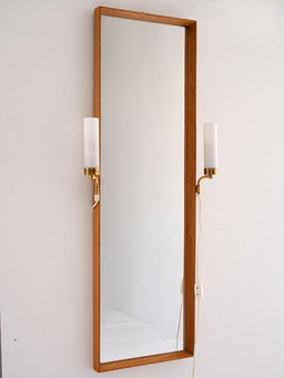 Miroir vintage des années 1950 avec appliques en laiton intégrées