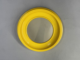 Miroir rond jaune des années 1970 - dans le style de Kartell space ageMiroir rond jaune des années 1970 - dans le style de Kartell space age