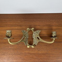 Bougeoir mural en laiton antique - Applique Art Déco à double brasBougeoir mural en laiton antique - Applique Art Déco à double bras