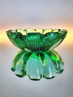 Bol vintage vert de Murano, technique du bubble splash, Italie, années 1970