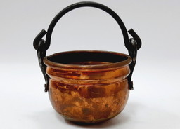 Chaudron (marmite) vintage en cuivre martelé avec anse en fer forgéChaudron (marmite) vintage en cuivre martelé avec anse en fer forgé