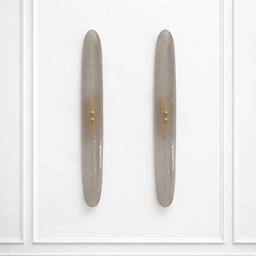 Applique vintage, métal laqué gris et verre courbé sablé, France, 1980