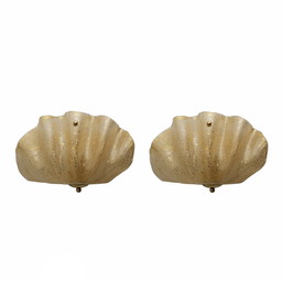 Paire d'appliques attribuées à Barovier & Toso en laiton et en verre de Murano Pulegoso