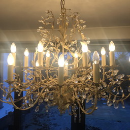 Peil Puzler Grote Glazen Tafellamp Met Zijden Kap