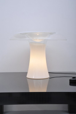 Lampe de table vintage à champignon, Hustadt Leuchten, verre opalin blanc, modèle L, années 1970