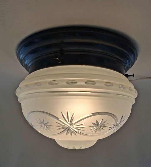 Art Deco stijl - opaline glas - koper armatuur - 1e helft 20e eeuwDeco stijl - opaline glas - koper armatuur - 1e helft 20e eeuw