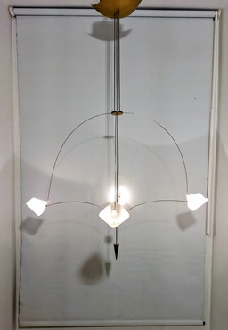 Grande suspension Florian Schulz Onos 55 originale en laiton des années 1980 avec système de poulie réglable