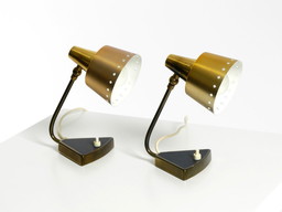 Lampes de table vintage du milieu du siècle Lampes de chevet Verre opale Laiton