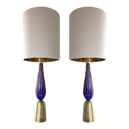 Lampe de table contemporaine en verre de Murano à lumière bleue et papillon
