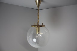 lampe à suspension glashuette limburg vintage 1960s 70s abat-jour en verre clair et laiton