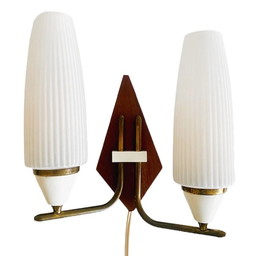 Paire D'Appliques Doubles En Laiton Et Opaline, France, Mid-Century