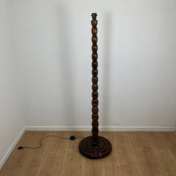 Magnifique grand lampadaire original allemand des années 1930 en bois de chêne foncé sans abat-jour