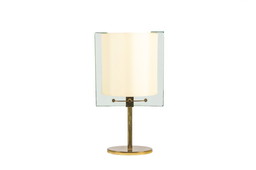 Lampe de table en laiton restaurée des années 1940 avec abat-jour en verre