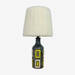 Lampe vintage en céramique jaune avec nouvel abat-jour en tissu vintage original fait à la main