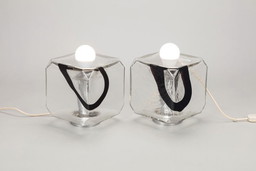 Lampe De Table Vintage • Acier & Verre • Murano • Space Age • 1970