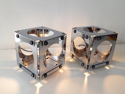 Lot de 2 lampes de table cubiques chromées des années 70 par Goffredo Reggiani, ensemble de lampes de table Space Age