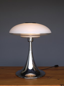 Lampe de table champignon en verre et chrome, design vintage, Baum Leuchten, 1970.