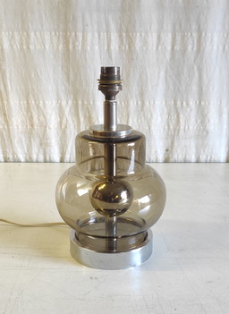 Pied de lampe à poser Space Age en métal chromé et verre fumé - années 70