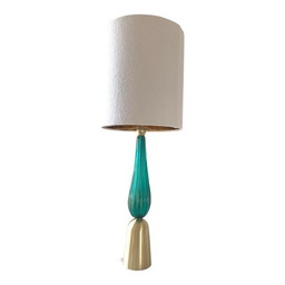 Lampe de table contemporaine en verre de Murano vert de mer avec abat-jourLampe de table contemporaine en verre de Murano vert de mer avec abat-jour