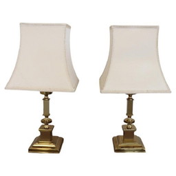 Lot de 2 lampes de lit vintage - verre ambré et laiton