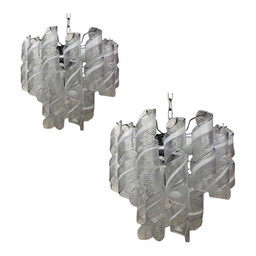 Lustre en verre de Murano transparent et argenté du 21e siècle