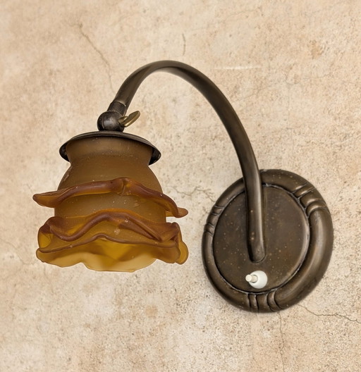 Lampe de table en laiton, abat-jour en verre, forme calice, marron, années 1980, J Vintage