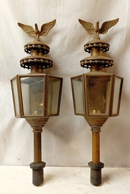 Paire de lampes pendantes en cuivre brutaliste et verre soufflé avec bouteille verte des années 1970