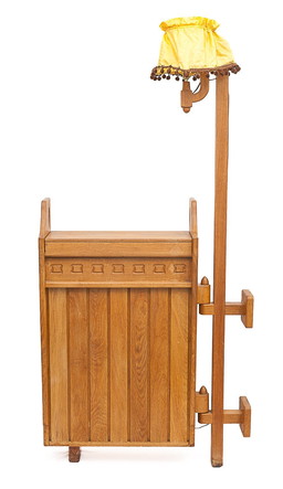 Applique/lampe ciseaux en pin teinté de Translandia. Abat-jour orné d'une gravure « Folklore » de Göta Trädgårdh. Danemark,