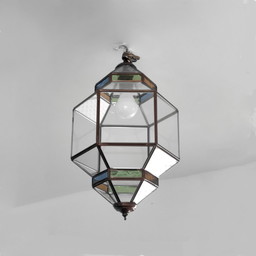 Plafonnier Art Nouveau en laiton et verre. Espagne, années 1930.