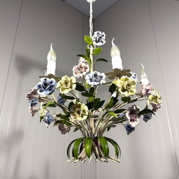 Suspension fleur, modèle Alba, 3 pétales structure métal doré et tissu (teinte personnalisable)