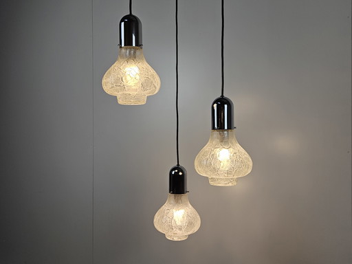 1 ensemble de 2 lampes suspendues à boule en verre par Peill et Putzler 1970