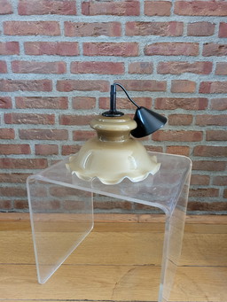 Lampe suspendue vintage en opaline avec plis en massire marronLampe suspendue vintage en opaline avec plis en massire marron