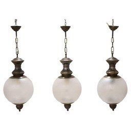 Lampes suspendues en laiton et verre, 1960S, ensemble de 3Lampes suspendues en laiton et verre, 1960S, ensemble de 3