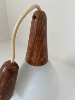 Lampe à suspension jaren 70 avec capuchon en verre opalin