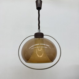 Lampe suspendue en plexiglas brun et aluminium