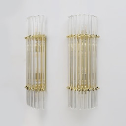 Paire d'appliques murales italiennes modernes en verre de Murano et laiton "Corteccia", années 80