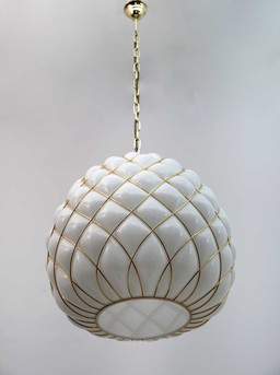 Lustre en verre de Murano blanc translucide. Italie, travail contemporain.