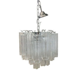 Lustre contemporain italien en verre de Murano transparent "Felci".