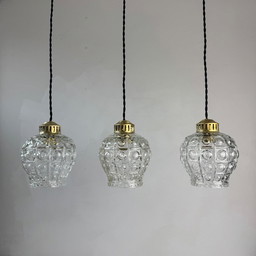 Lustre vintage en verre d'art et laiton de Kamenicky Senov, Tchécoslovaquie, années 1970
