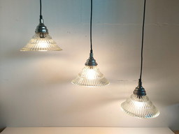 Ensemble de 3 suspensions en verre style Holophane