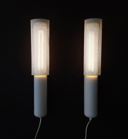 1 des 2 appliques WOJA en métal blanc perforé des années 1980 ; 2 disponibles !1 des 2 appliques WOJA en métal blanc perforé des années 1980 ; 2 disponibles !