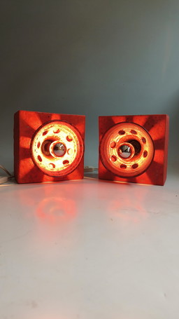 2 lampes murales brutalistes fat lava wester-germany 1970 poterie orange