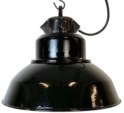 Industrial Black Enamel Factory Lamp with Cast Iron Top, 1960s