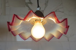 Lampe à suspendre Art déco verre rouge blanc zigzag rond