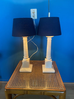 2 lampes de table vintage en albâtre / marbre