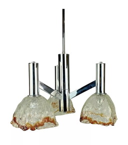 60's 70's Plafonnier Chandelier Verre de Murano Chrome